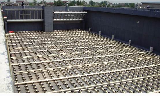 3、由于膜片式微孔曝气器可满布在曝气池底部,在池中溶解氧均匀,可适用于各种池型和深度,也可对原有曝气池进行改造,使其提高效果。