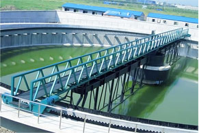 结构与工作原理 ZBGX型周边传动刮吸泥机采用周边传动,污水从池中心的进水管流入,经稳流筒扩散后,均匀的向周边呈辐射状流出,呈悬浮状的污泥经沉淀后沉积于池底,驱动装置驱动工作桥架沿周边旋转,并带动刮臂及刮泥板转动,刮泥板将污泥刮集后由吸泥管依靠池内静水压抽吸至集泥槽内排入中心泥缸,再通过中心排泥管排出池外,水面上的浮渣通过旋转撇渣装置导入排渣斗内排出池外;而上清液则通过三角形出水堰板溢入出水槽内排出。 设备主要特点 1、工作桥可采用半桥式或全桥式,其材质可采用碳钢不锈钢或铝合金等; 2、驱动装置采用轴装式斜齿轮减速机与主动轮直联传动,结构紧凑,机械效率较高; 3、吸泥管采用长扁口形式,吸泥效果好; 4、吸泥方式有两种:自吸式和虹吸式(常规采用自吸式); 5、设备机械和电子双重过载保护,运转安全可靠; 6、设备操作简便,可直接就地/远程控制设备的运行。 订货须知 1、订货时,请注明池径、池深等主要参数及提供沉淀池土建图; 2、请注明设备材质; 3、若需配套不锈钢出水槽、出水堰板、浮渣挡板等附件,请注明相关尺寸; 4、若客户有特殊要求,可在订货合同中事先注明。 |