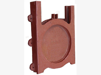 门框为铸铁闸门与基础之间的连接构件,相当于平面钢闸门的埋高部分。门框包括下部门框和上部导轨两部分。下部门框一般整体铸造加工,导轨可用螺栓(螺钉)与门框相接,或与下部门框整体铸造,在门体开启到最高位置时,导轨的顶端应高于门体的水平中心线。
